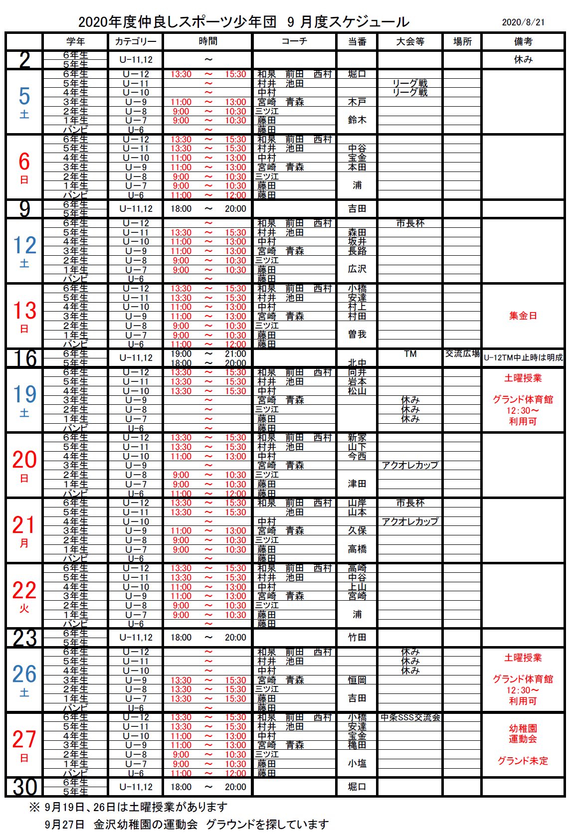 2020/09/27(日) U-9/U-7/バンビ お休み