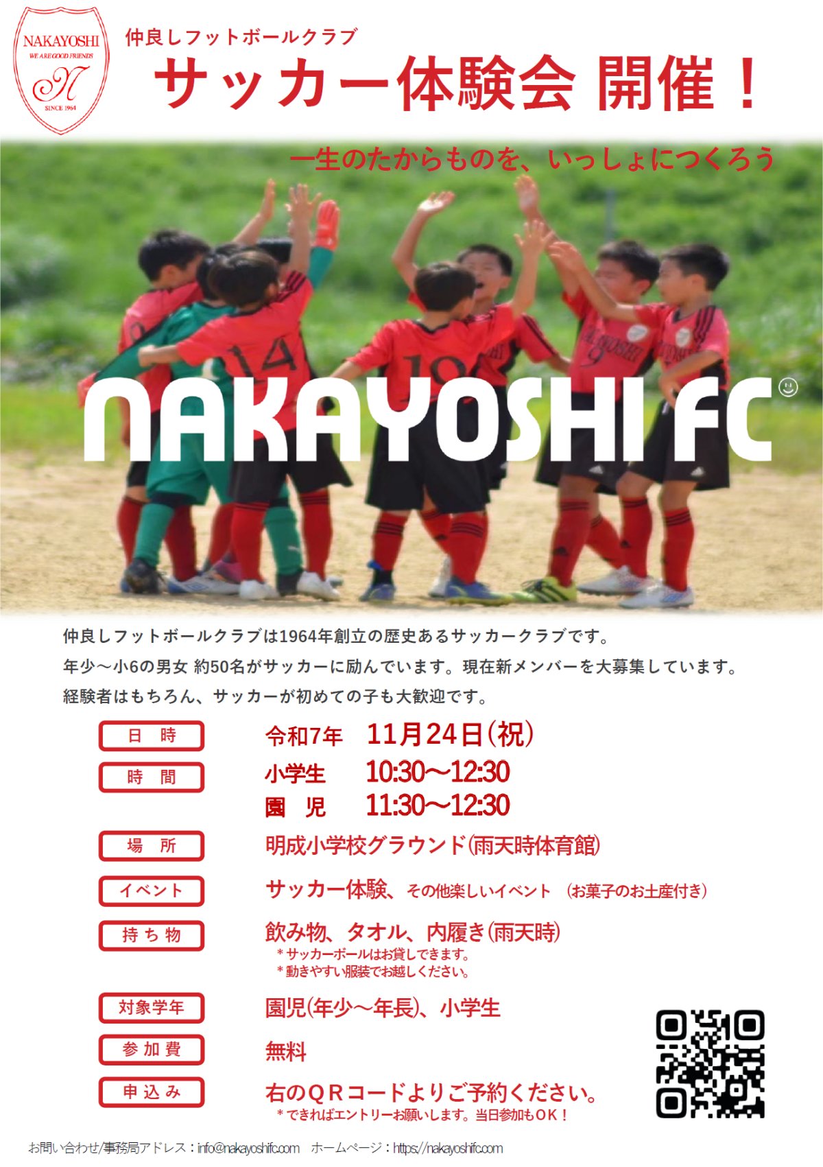 2025年11月24日(月・祝)に明成小学校にてサッカー体験会を開催します!